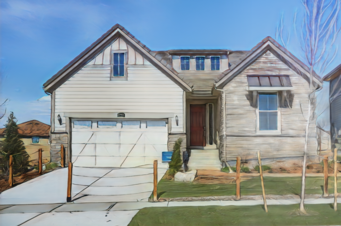 Single level home. Two tiny fake windows above the front door. 2 close together tall windows to side of front door.